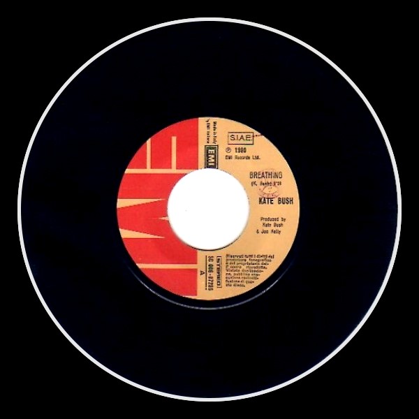 Kate’s erste Single aus dem Album „Never For Ever“ wurde am 14.April 1980 veröffentlicht. Original UK Cover haben eine angeschrägte Cover Öffnung. Nachpressungen haben einen runden Eingriff. Card Picture Sleeve. Picture Labels.