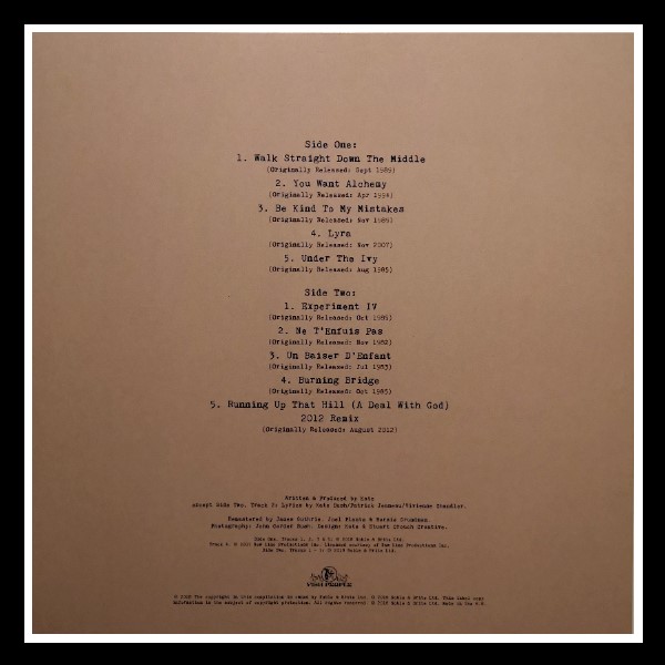 „Remastered in Vinyl Part I“ heißt der erste Teil, der auf vier LPs die Alben „The Kick Inside“ (1978), „Lionheart“ (1978), „Never For Ever“ (1980), und „The Dreaming“ (1982) versammelt.