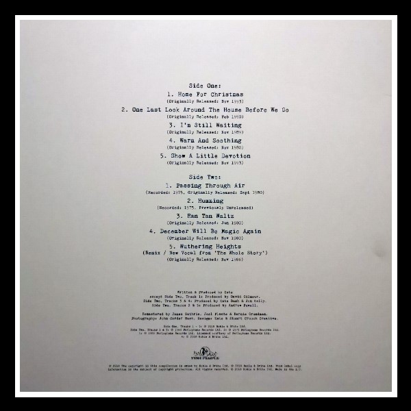 Kate legte am 16. November 2018 ihren gesamten Albumkatalog neu auf, und zwar auf CD und Vinyl. Aufgeteilt ist das Ganze in insgesamt vier LP-Boxen bzw. zwei CD-Boxen.